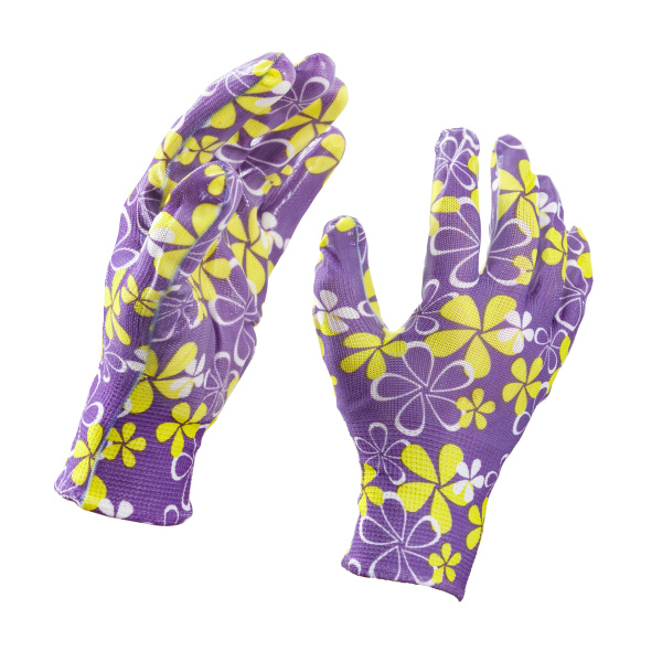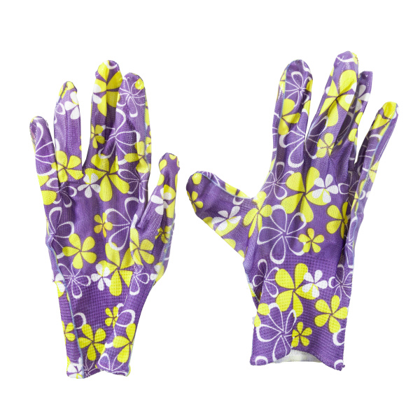 Красивые и удобные садовые нейлоновые перчатки с покрытием из прозрачного нитрила. Вес 32 г.
