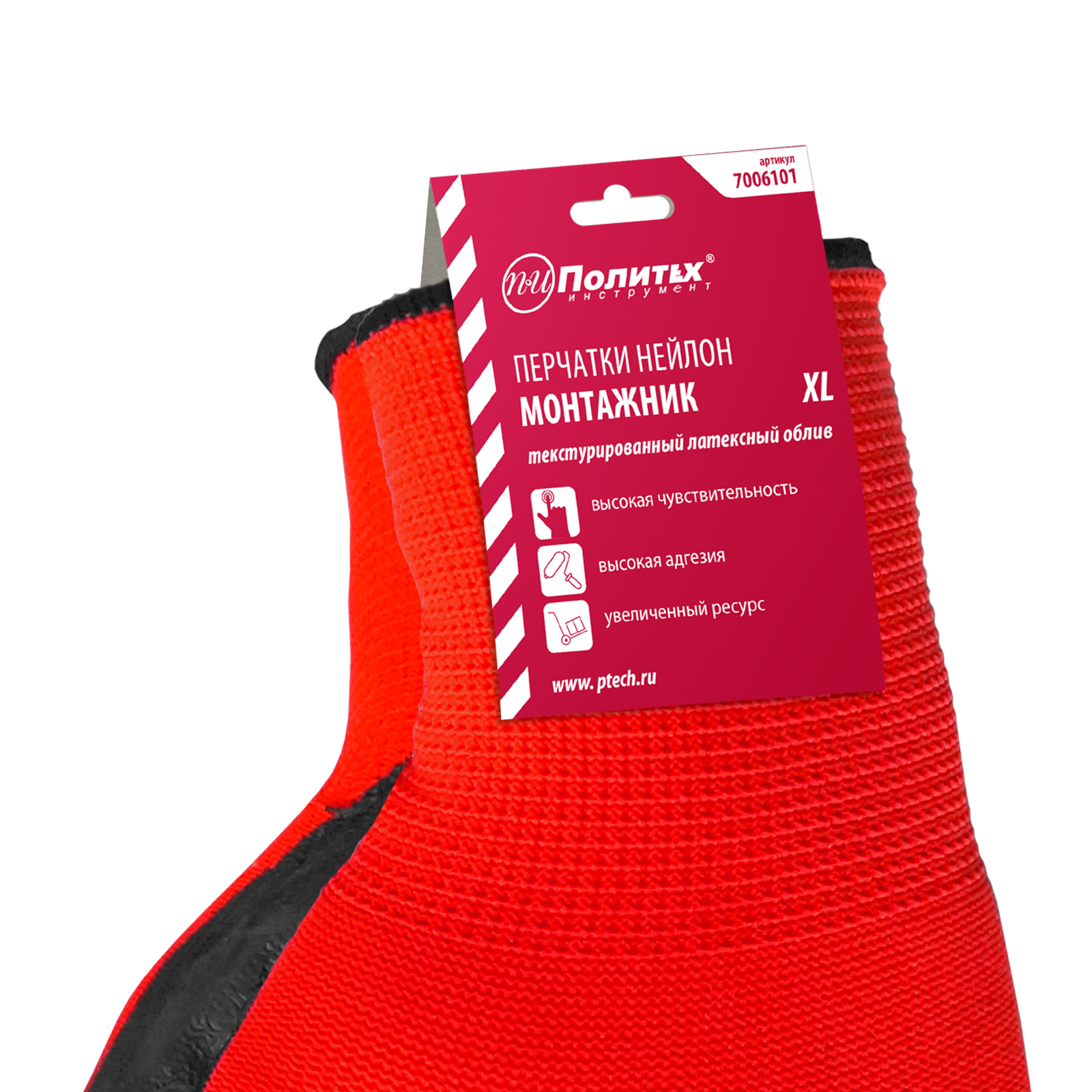 Перчатки нейлон, текстурированный латексный облив на подвесе