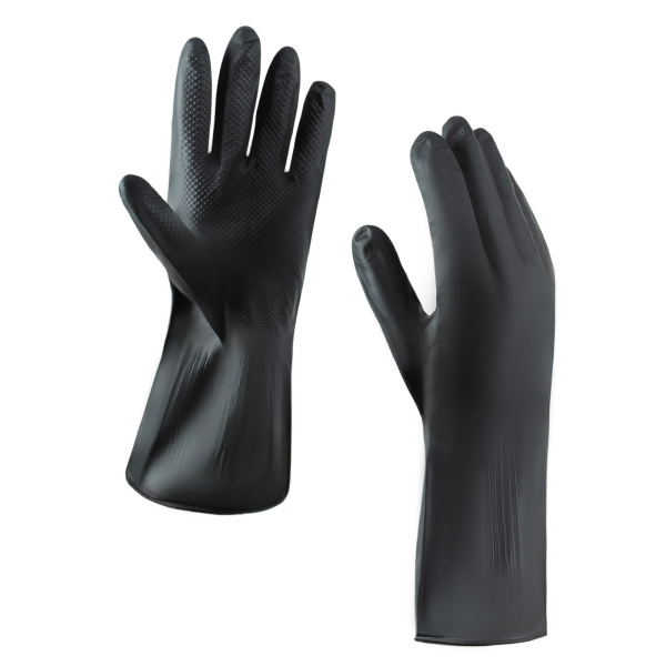 Используются при работах с разбавленными до 20% концентрации растворами кислот и щелочей, их солей. Срок службы в агрессивной среде не более 4 часов. Изготовлены из 100% латекса. Вес 60г.