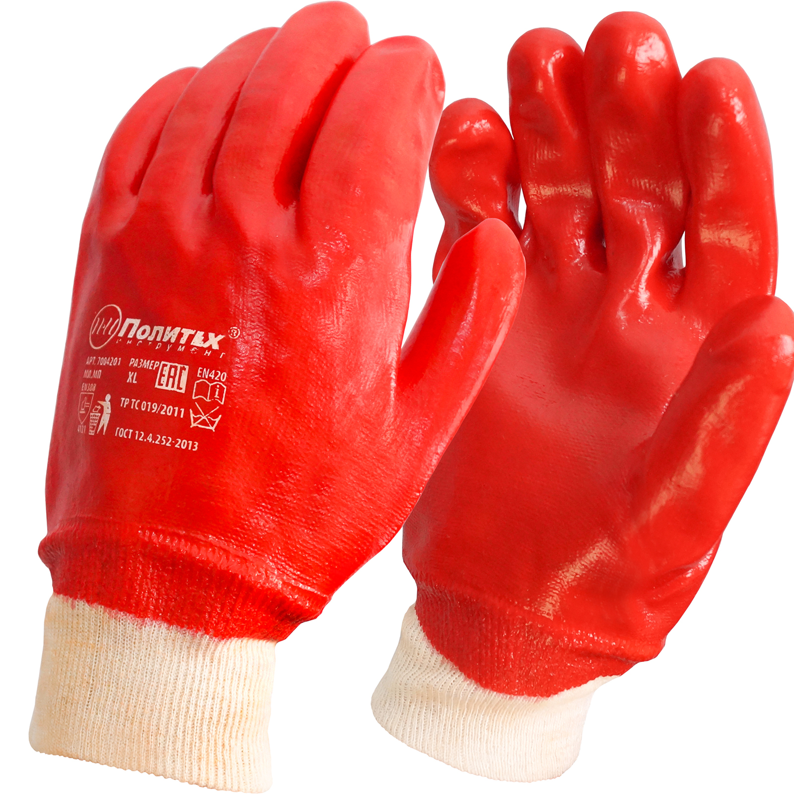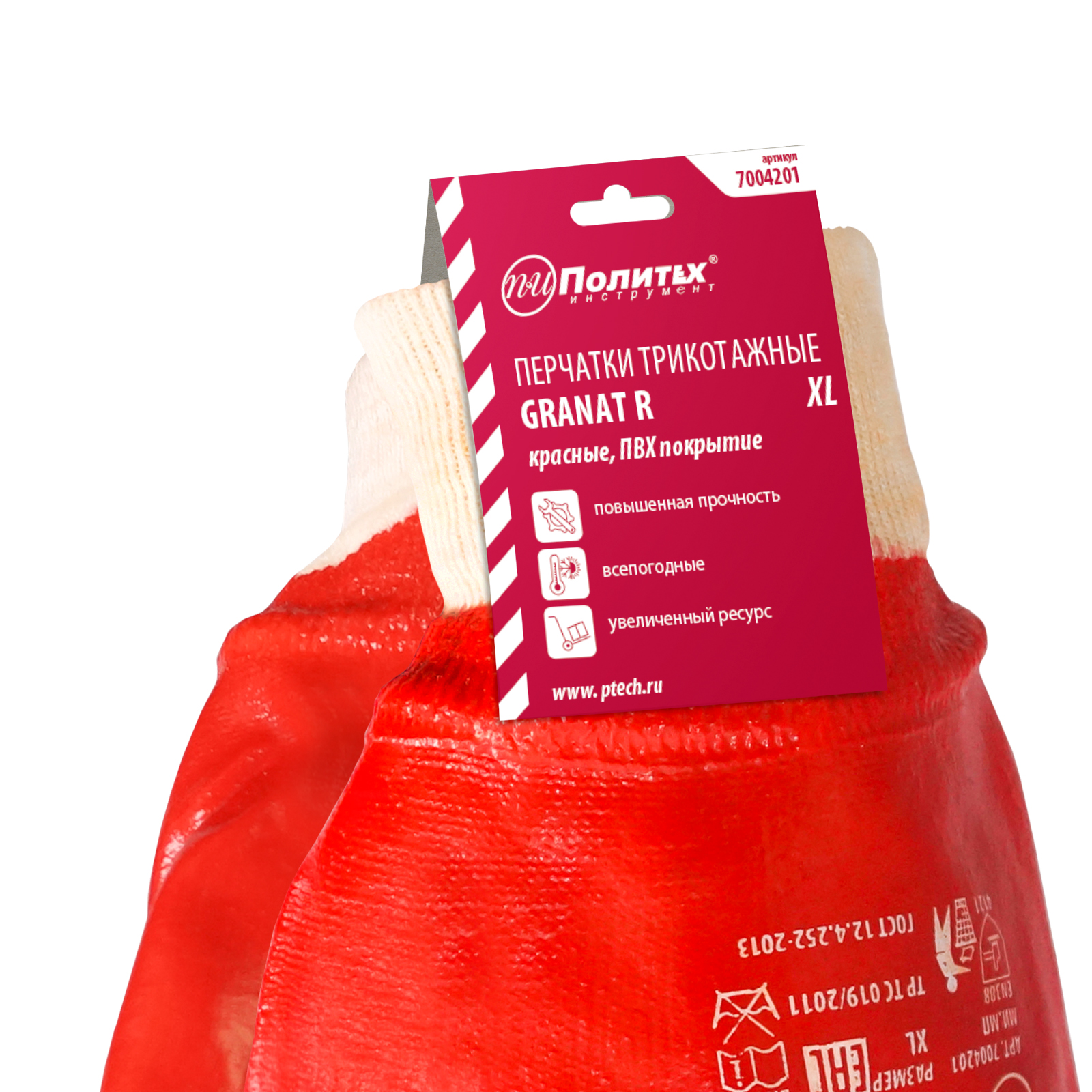Перчатки трикотажные, красные, ПВХ покрытие на подвесе