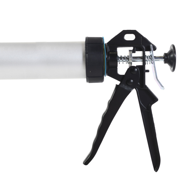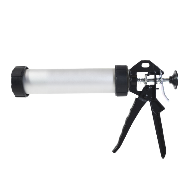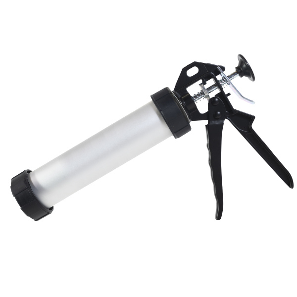 Полностью закрытый цилиндрический алюминиевый корпус, хромированный стержень круглого сечения; для герметиков, клеев.