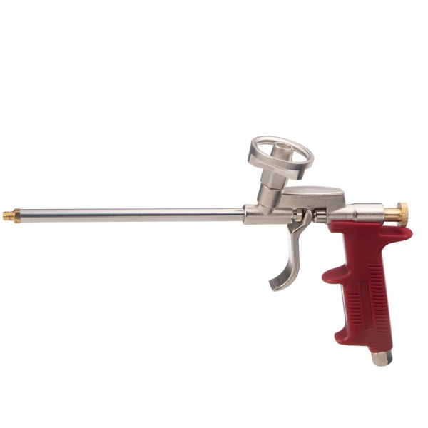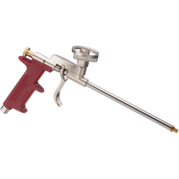 Пластиковая рукоятка; металлические с никелевым покрытием корпус, адаптер и курок; ствол из нержавеющей стали; клапан с металлическим шариком; стальной винт для регулировки подачи пены.