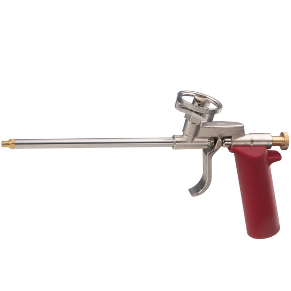 Пластиковая рукоятка; металлические с никелевым покрытием корпус, адаптер и курок; ствол из нержавеющей стали; клапан с металлическим шариком; стальной винт для регулировки подачи пены.