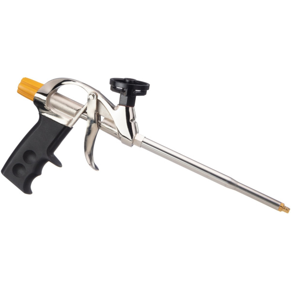 Пластиковая рукоятка; металлический хромированный корпус; стальной курок; адаптер с тефлоновым покрытием; ствол из нержавеющей стали; клапан с металлическим шариком; пластиковый винт для регулировки подачи пены.