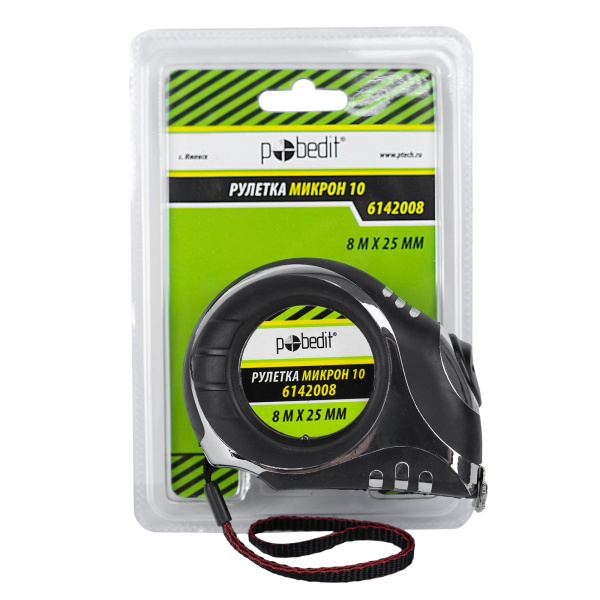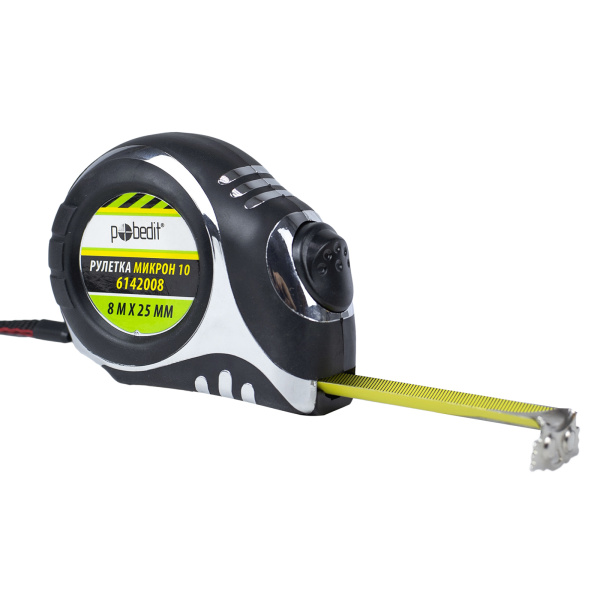 Рулетка Микрон-10, 8м*25мм, обрезин. хром. корпус