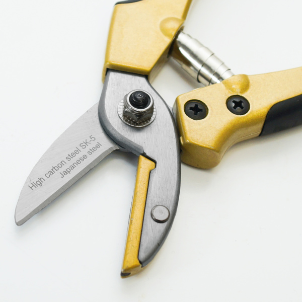 Лезвия из японской стали SK5, закалены и остро заточены, хромированное покрытие. Ленточная пружина, фиксатор.