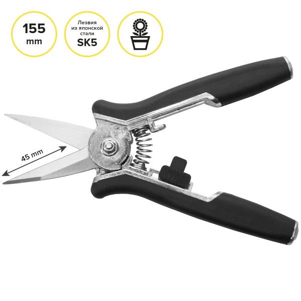 Линейка Silver. Для ухода за цветами и растениями. Размер 155 мм. Длина лезвий 45 мм. Удобные металлические рукоятки имеют резиновые вставки и оснащены боковым фиксатором.
