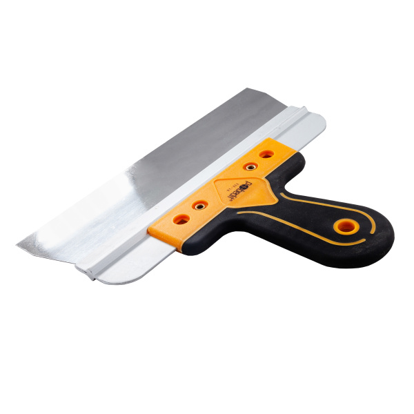 Изготовлен из нержавеющей стали. Двухкомпонентная рукоятка не проскальзывает в руке за счет специальной изогнутой формы.