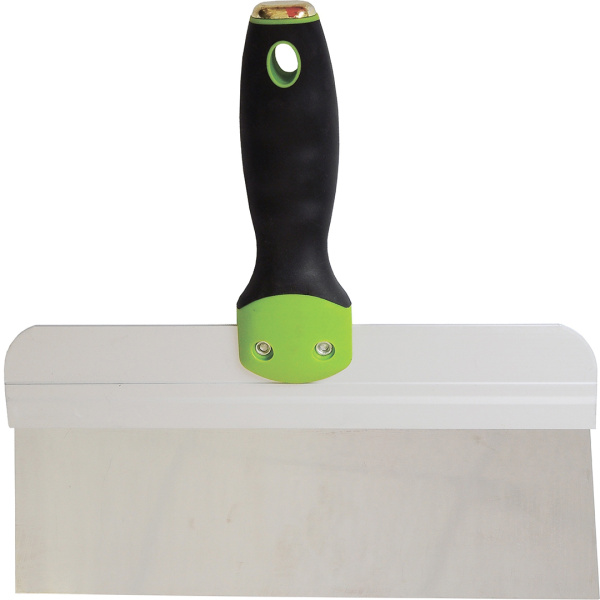 Имеет широкое профилированное полотно из нержавеющей стали с двухкомпонентной рукояткой. Предназначен для нанесения, разравнивания и сглаживания шпатлевочного слоя на поверхности.