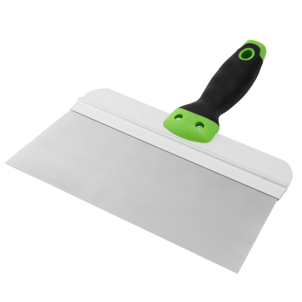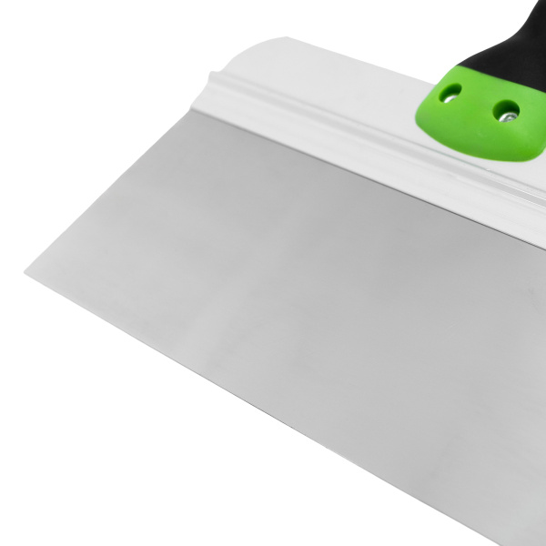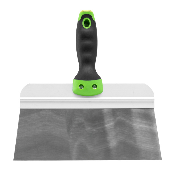 Имеет широкое профилированное полотно из нержавеющей стали с двухкомпонентной рукояткой. Предназначен для нанесения, разравнивания и сглаживания шпатлевочного слоя на поверхности.