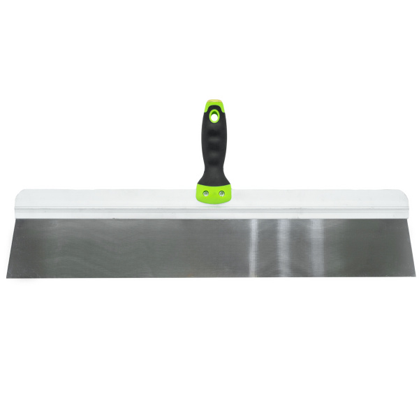 Имеет широкое профилированное полотно из нержавеющей стали с двухкомпонентной рукояткой. Предназначен для нанесения, разравнивания и сглаживания шпатлевочного слоя на поверхности.