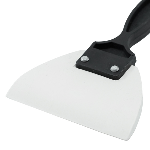 Изготовлен из ПВХ, толщина 5 мм, не оставляет следов при работе. Ручка выполнена из пластика. Для нанесения жидких растворов, заделки швов и шпатлевания стен.