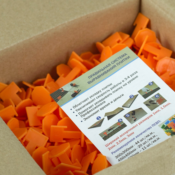 Используется для выравнивания поверхности при укладке керамической плитки и керамогранита. Ширина межплиточного шва - 1,4 мм