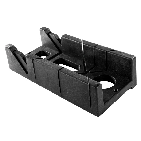 Изготовлено из ударопрочного пластика. Используется для фиксации заготовки и ее точного распила. Углы 45°, 90° и 135°, горизонтальный угол 45°. Ширина детали до 105 мм.