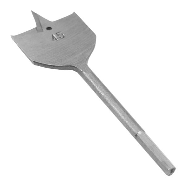 Выскоуглеродистая сталь,плечевая заточка, хвостовик шестигранной формы. Для сверления отверстий в древесине.