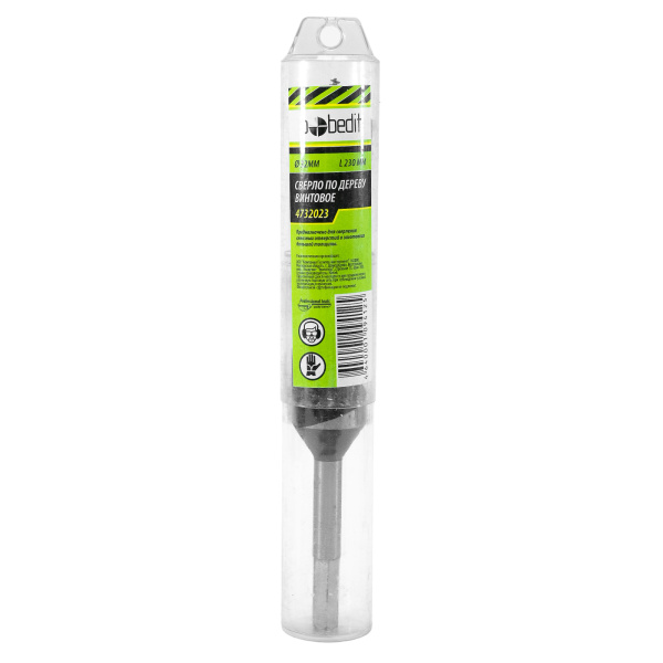 Высокоуглеродистая сталь, с повышенной твердостью режущей кромки, заостренный кончик, шестигранный хвостовик. Для сквозных отверстий в заготовках большой толщины.