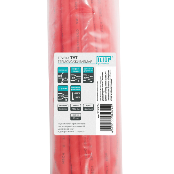 Термоусаживаемая трубка 6:3 красная 1м