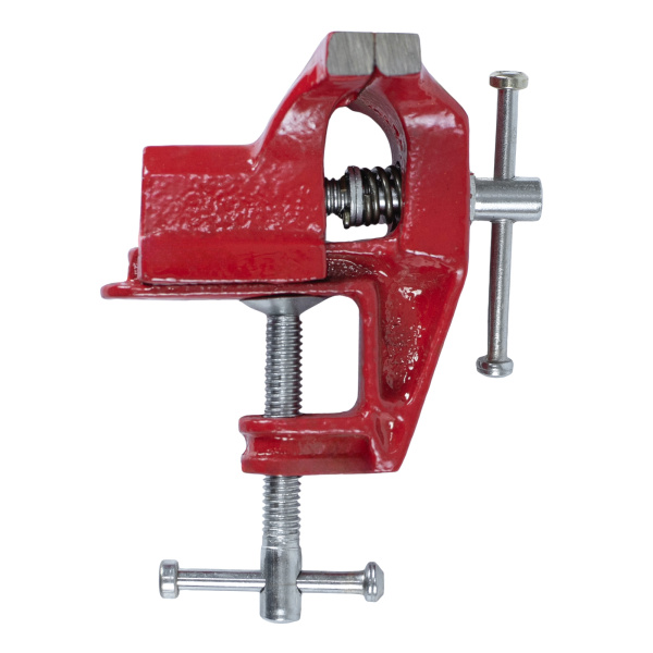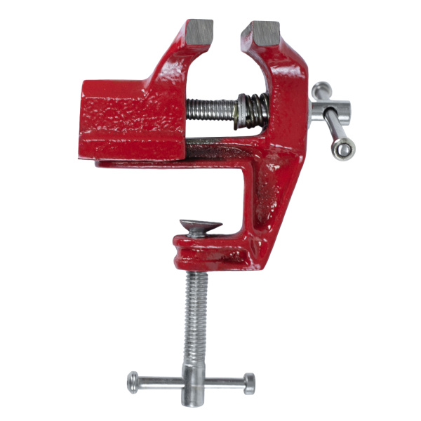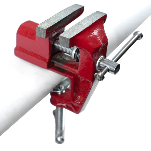 Тиски настольные, предназначены для фиксации мелких заготовок для дальнейшей слесарной обработки, изготовлены из чугуна, рабочие губки из стали твёрдость 45 HRс.