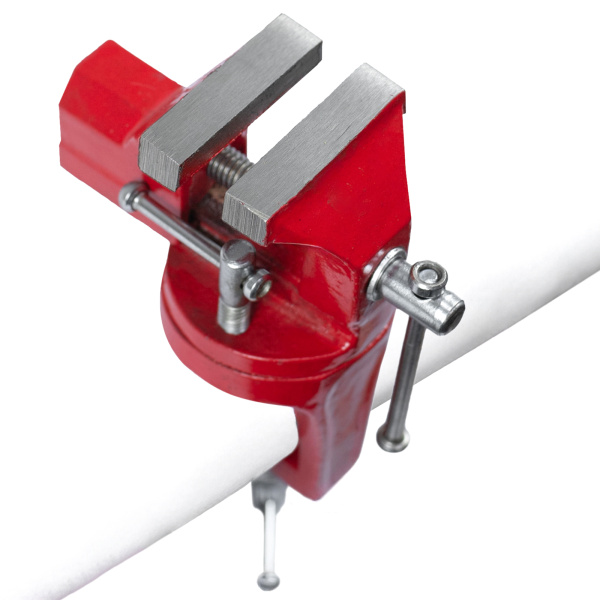 Тиски настольные, предназначены для фиксации мелких заготовок для дальнейшей слесарной обработки, изготовлены из чугуна, рабочие губки из стали твёрдость 45 HRс. Оснащены поворотным механизмом.