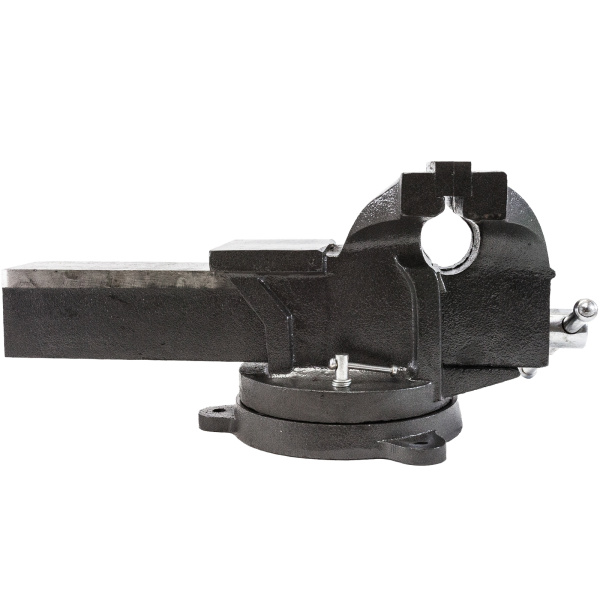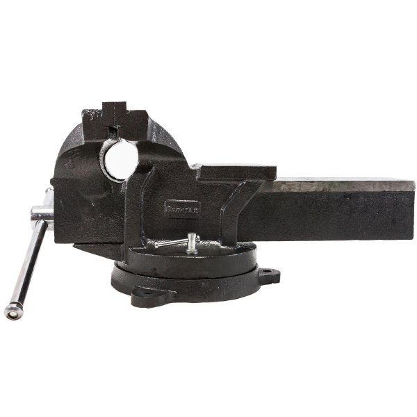 Имеют высокопрочный чугунный корпус, защитное порошковое покрытие, шпиндель со шплинтом из оцинкованной стали. Поворотный механизм 360°. Съемные стальные губки (твердость 50-58 HRC). Ширина губок: 200 мм, захват: 160 мм. Глубина зажима: 76 мм. Наковальня 100х110 мм