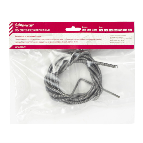 Предназначен для устранения засоров в канализационных трубах. Изготовлен из пружинной стали.