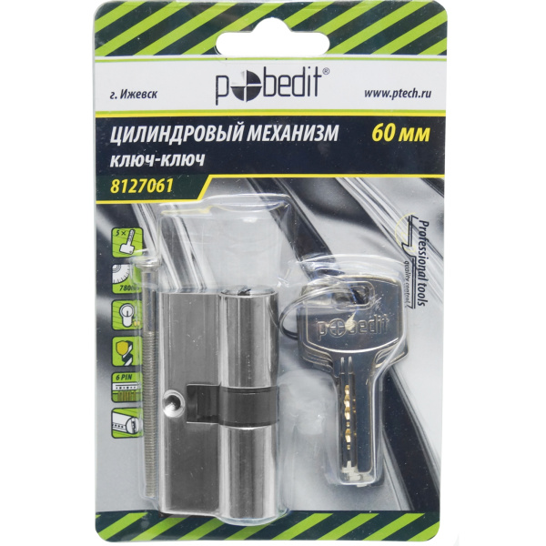 Цилиндр. механизм, ключ-ключ,цвет:серебро,60 мм Pobedit