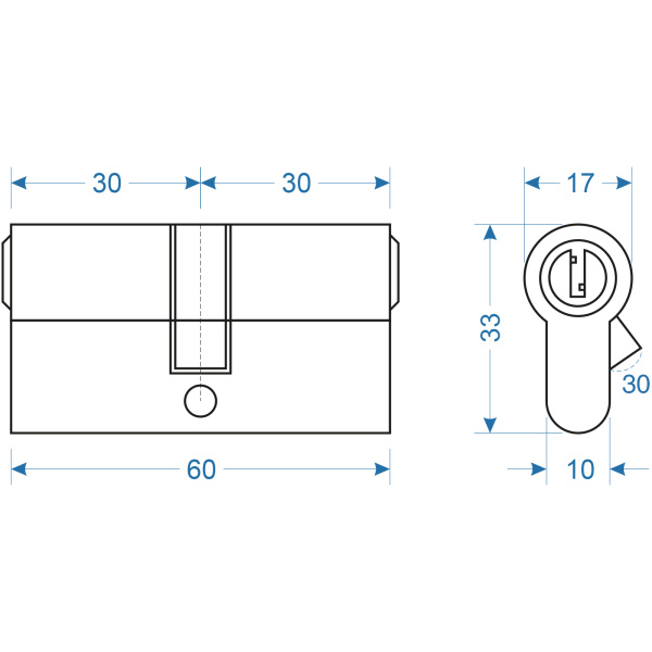 Цилиндр. механизм, ключ-ключ,цвет:серебро,60 мм Политех