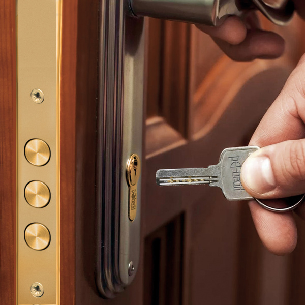 5 компьютерных ключей. Для отпирания и запирания замков врезного типа. Механизм высокой секретности, обеспечивает надежную защиту от взлома. Материал: латунь, гальваническое покрытие. Цвет: золото