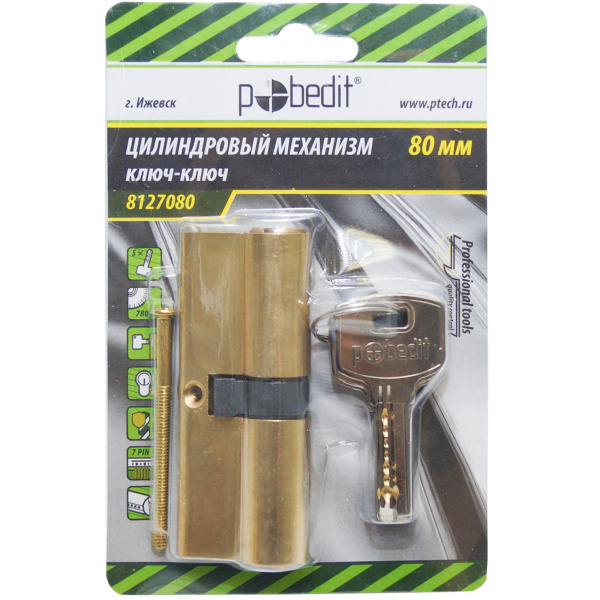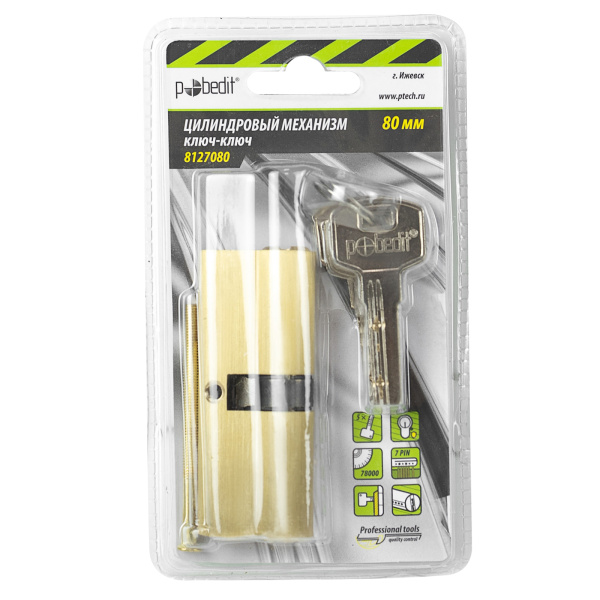 Цилиндр. механизм, ключ-ключ,цвет:золото,80 мм Pobedit