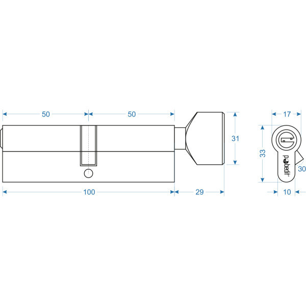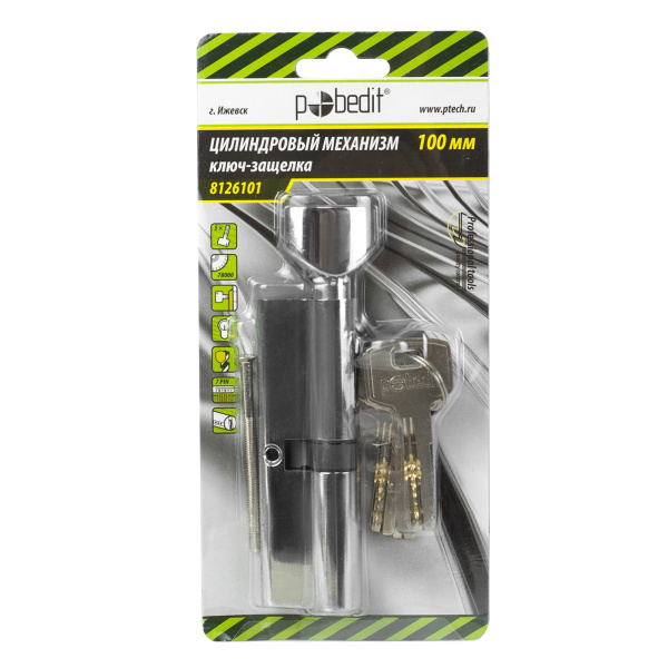 Цилиндр. механизм, ключ-защелка,цвет:серебро,100 мм Pobedit