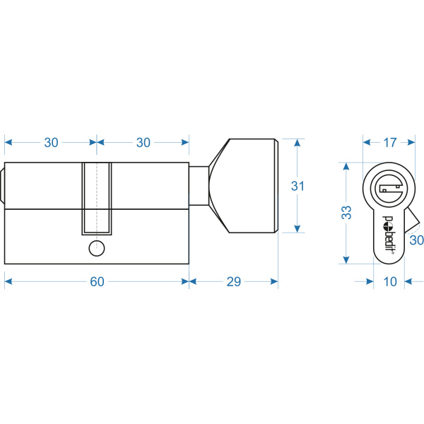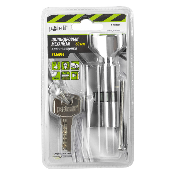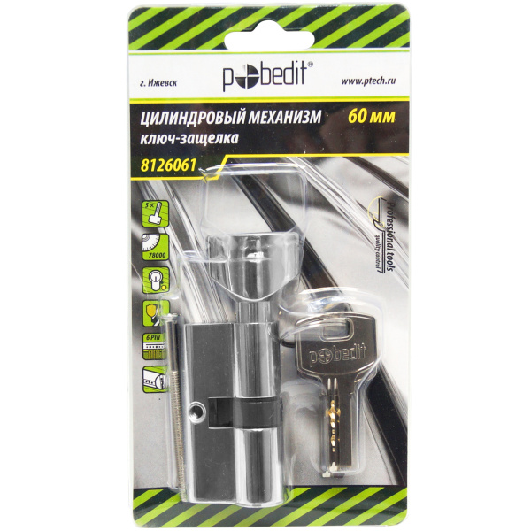 Цилиндр. механизм, ключ-защелка,цвет:серебро,60 мм Pobedit