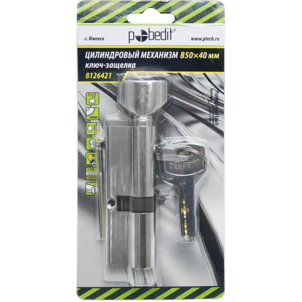 Цилиндр. механизм, ключ-защелка,цвет:серебро,В50х40 мм Pobedit