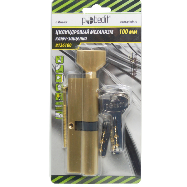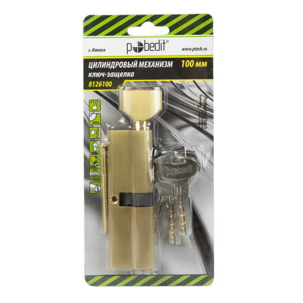 Цилиндр. механизм, ключ-защелка,цвет:золото,100 мм Pobedit