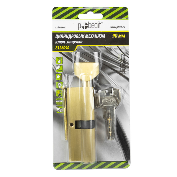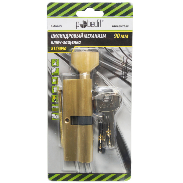 Цилиндр. механизм, ключ-защелка,цвет:золото,90 мм Pobedit
