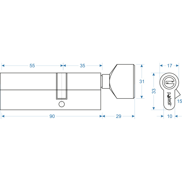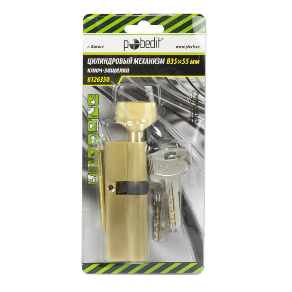 Цилиндр. механизм, ключ-защелка,цвет:золото,В35х55 мм Pobedit