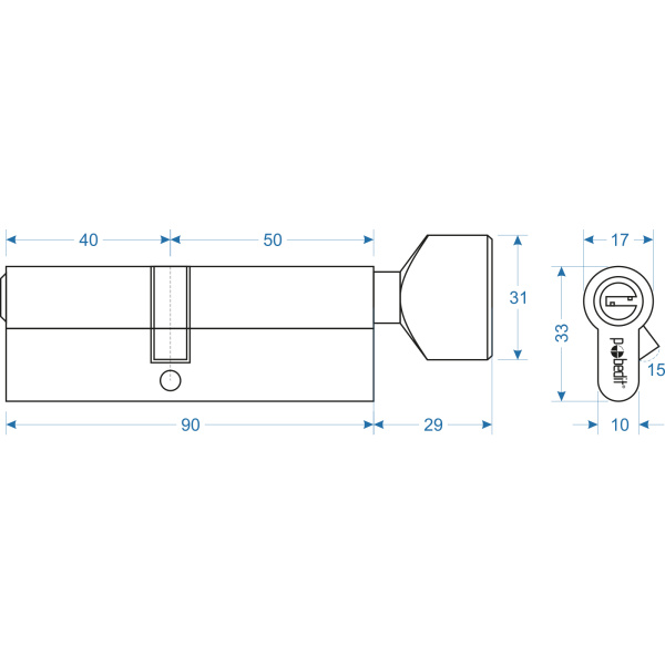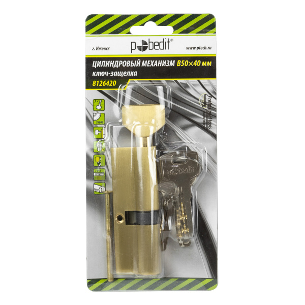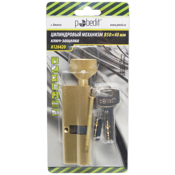 Цилиндр. механизм, ключ-защелка,цвет:золото,В50х40 мм Pobedit