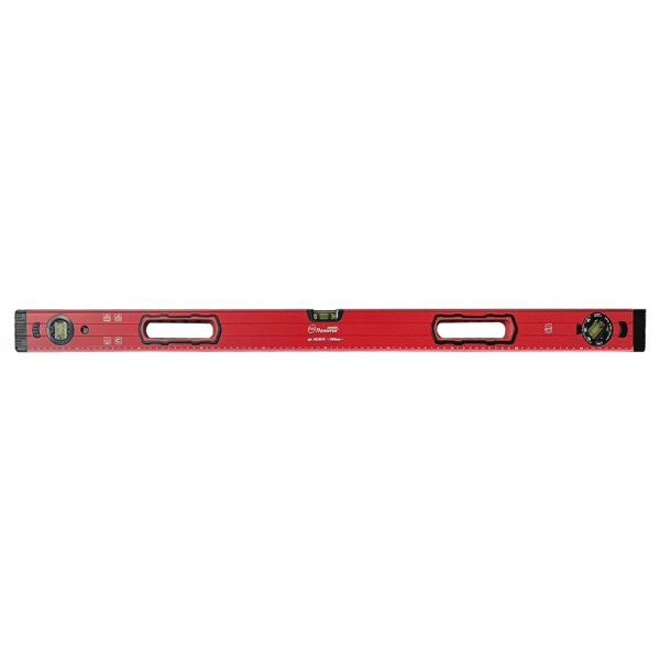 Алюминиевый профиль толщиной 0,8 мм, 3 глазка (0°, 90°, поворотный) точностью 1 мм/м.Фрезерованная магнитная рабочая поверхность. Измерительная шкала. Ударопрочные резиновые заглушки, прорезиненные ручки.