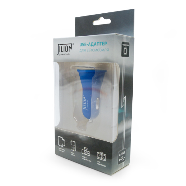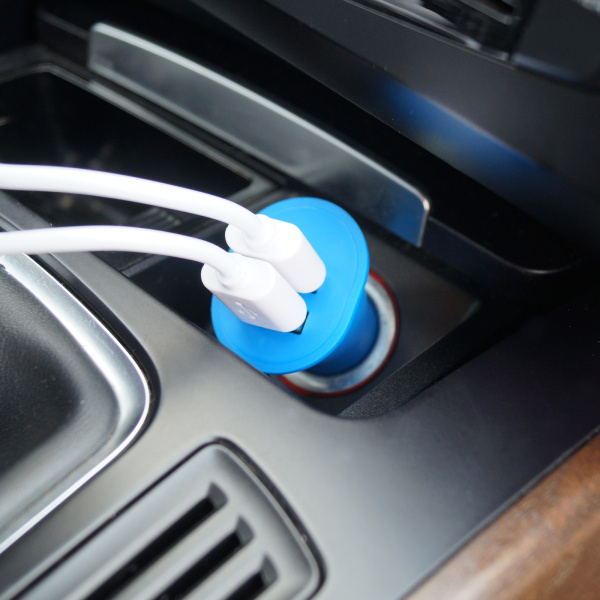 Автомобильный USB-адаптер 2USB 2100мА, синий