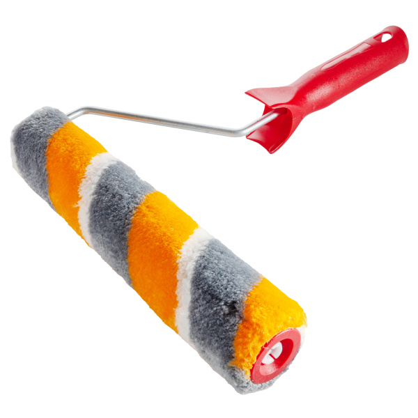 Валик изготовлен из тканного полиамида, высота ворса 12 мм. плотность 900 г/кв.м. Рукоятка из пластика, оцинкованный стержень.