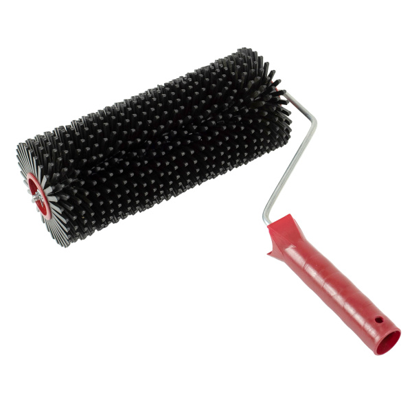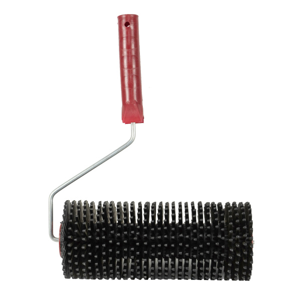 Изготовлен из пластмассы. Шип 27 мм с закруглением. Предназначен для прокатывания неотвержденных лицевых слоев наливных полов, стяжек с целью удаления воздуха.