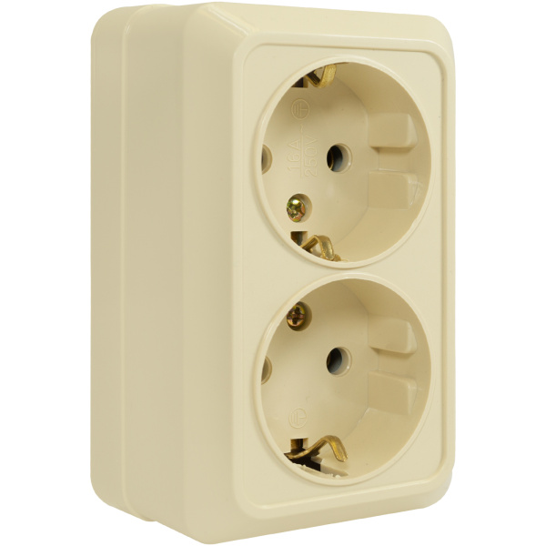 Розетка 2 гнезда (с/з) О/У. бежевый