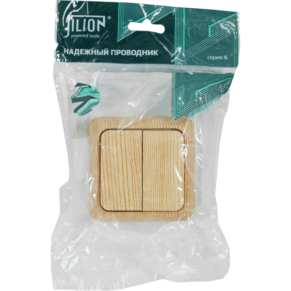 Выключатель двухклавишный О/У. дуб