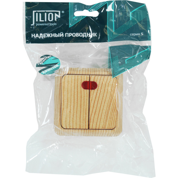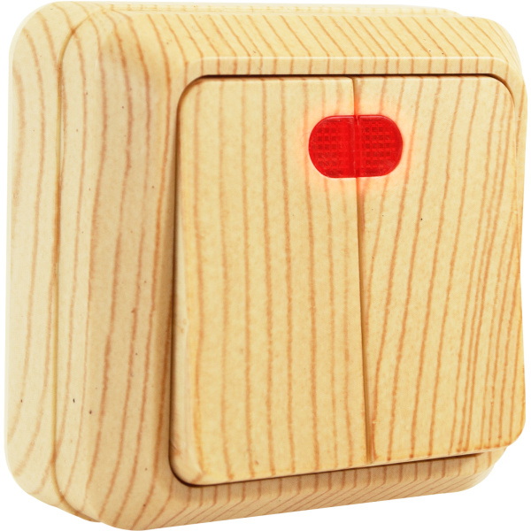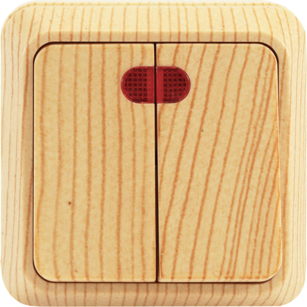 Выключатель двухклавишный с подсветкой О/У. дуб