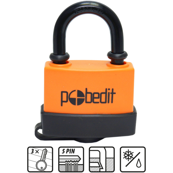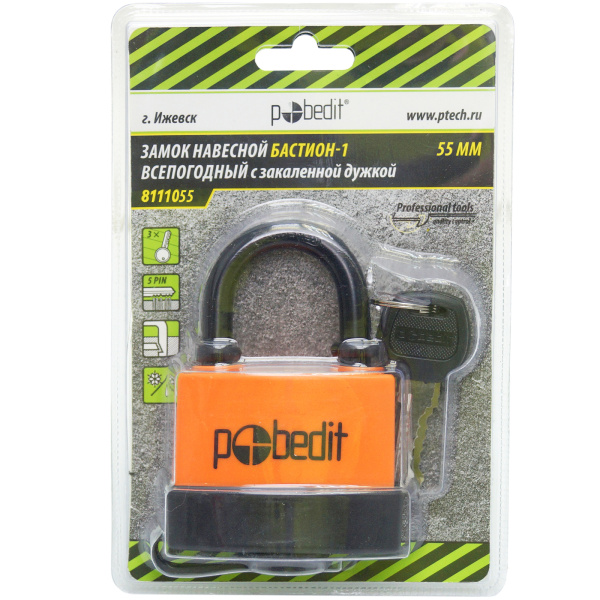 Замок навесной Бастион-1, всепогодный, с закаленной дужкой, 55мм, Pobedit