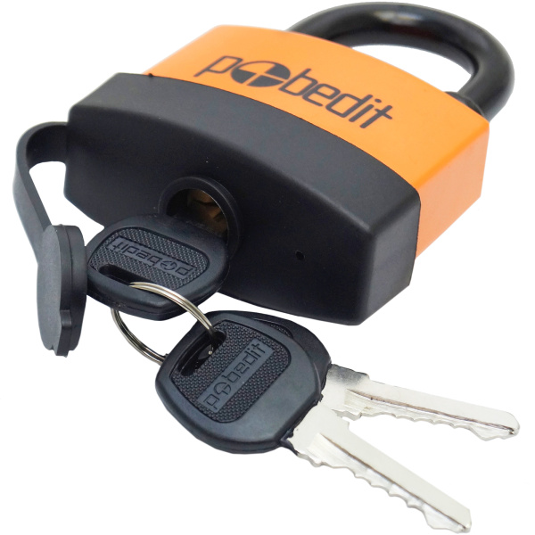 Замок навесной с прочным обрезиненным корпусом. Закаленная дужка и сложная конструкция корпуса снижают вероятность взлома. В комплекте 3 ключа.