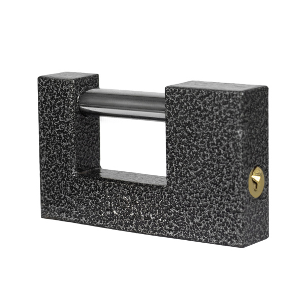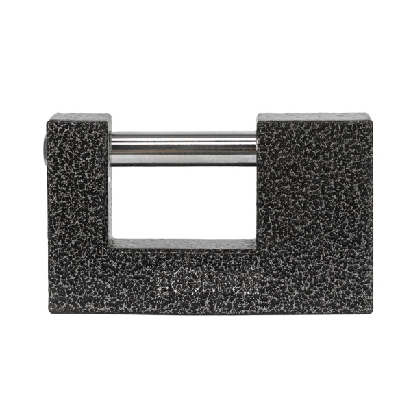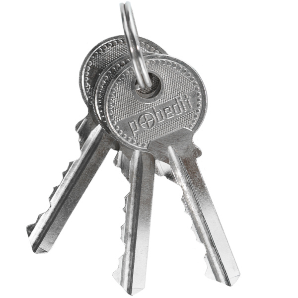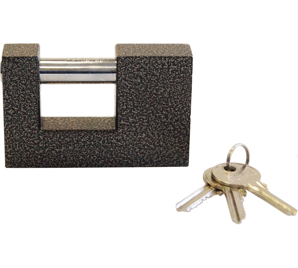 Легкий навесной замок с прочным корпусом. Имеет заглубленный прямой стальной засов. В комплекте 3 ключа.