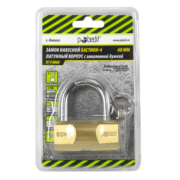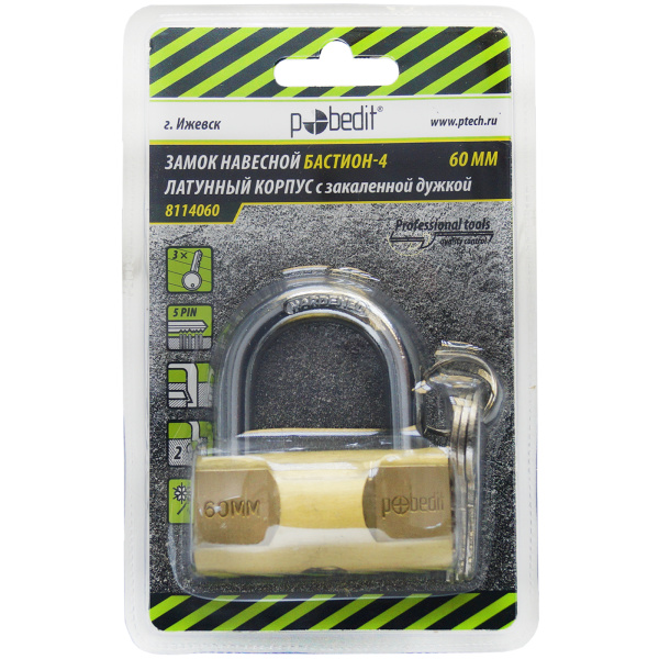 Замок навесной Бастион-4, латунь, 60 мм, Pobedit