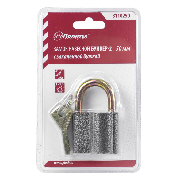 Замок навесной Бункер-2, аллюминиевый корпус, с закаленной дужкой, 50мм, Политех