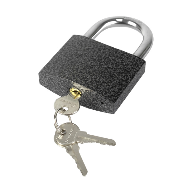 Высокопрочный корпус и стальная закаленная дужка .В комплекте 3 ключа.